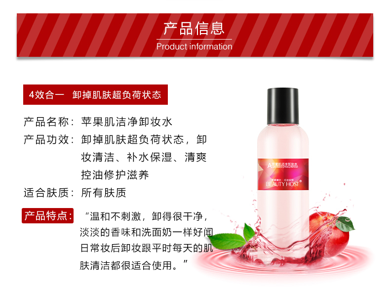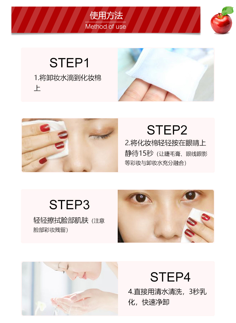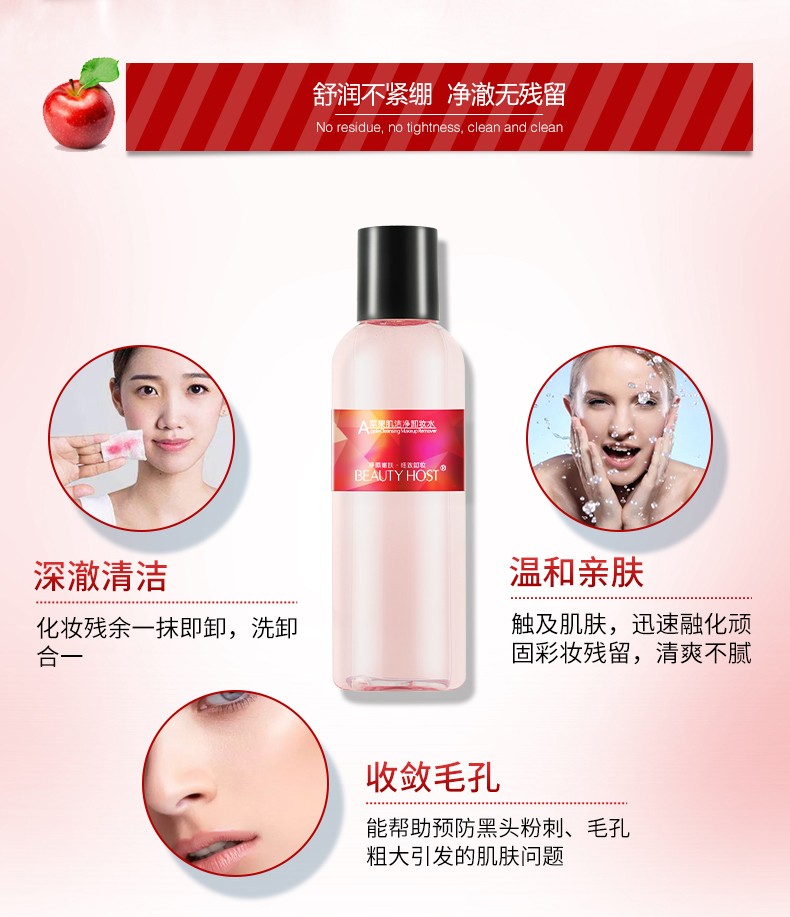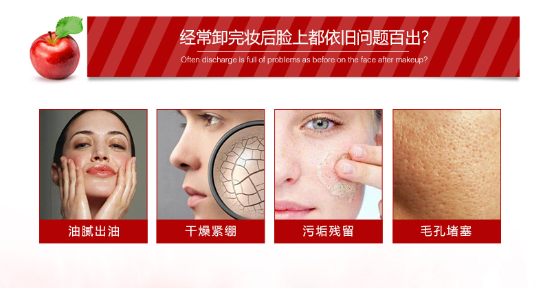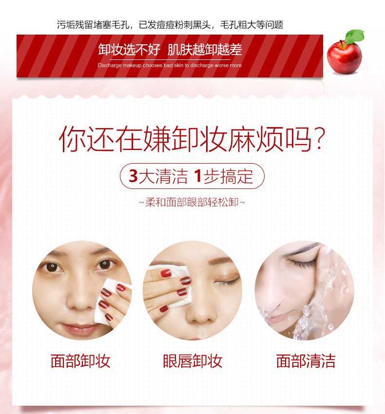 结合苹果精华,清洁毛孔污垢,同事呵护娇嫩肌肤,温和保湿,改善肌肤,细致嫩肤,令肌肤清新干净,妆前妆后都是精致女孩。