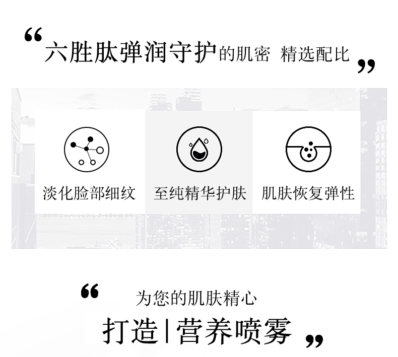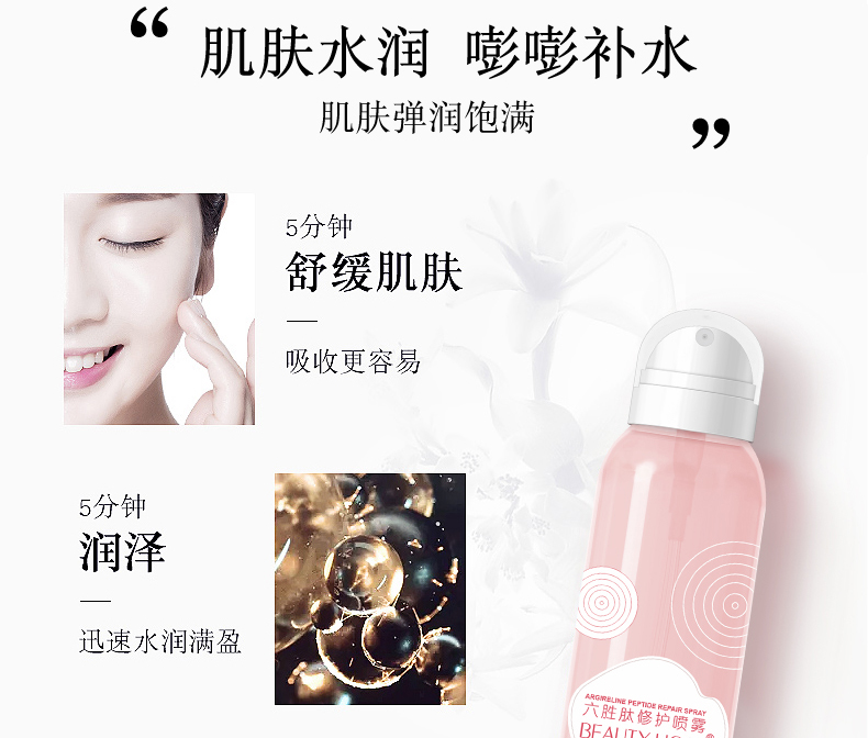 蕴含六胜肽精华,保湿补水丝滑润养,让肌肤莹润饱满,改善肌肤干燥问题,细致毛孔,滋润并修护肌肤,让肌肤光滑透亮,微笑上场,焕发柔嫩光泽。