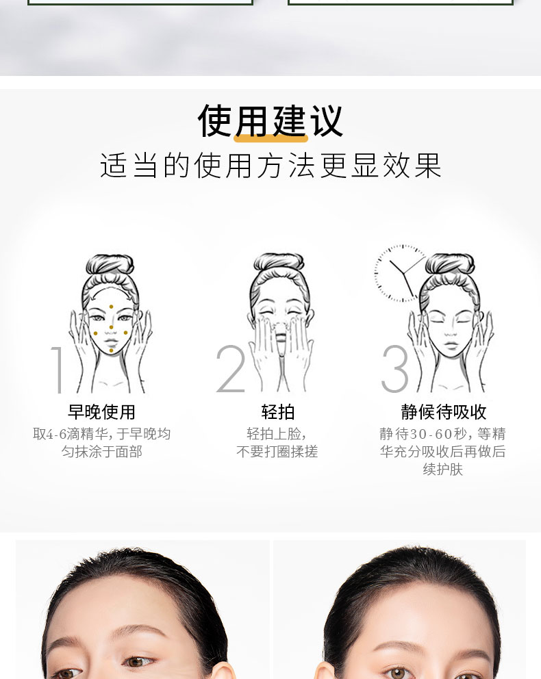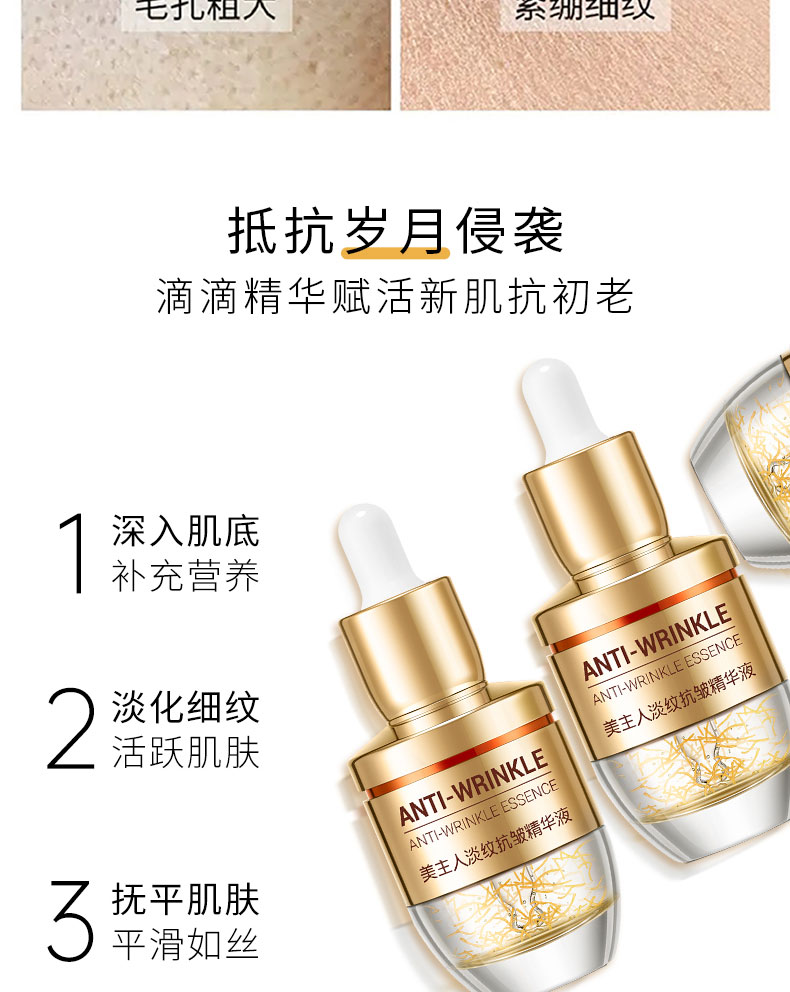 来自革新的抗皱研发 ⏬ ★ 以科学科研技术造就护肤臻品 ★ 多重淡纹抗皱精华呵护娇嫩肌 精华深透肌底 抚平肌肤皱纹 柔滑易吸收 绽现光滑美肌