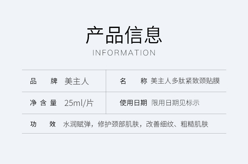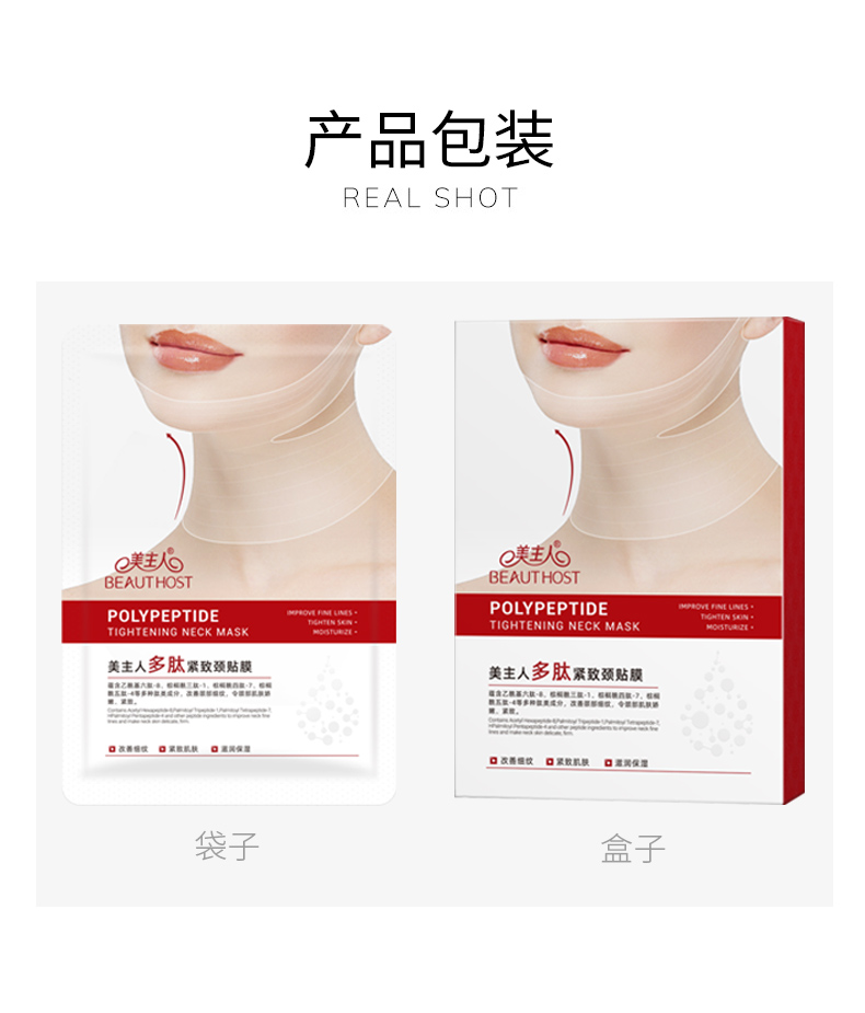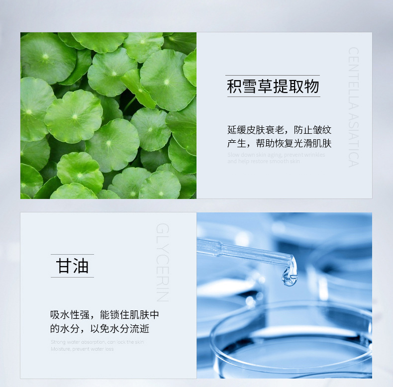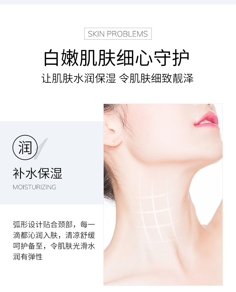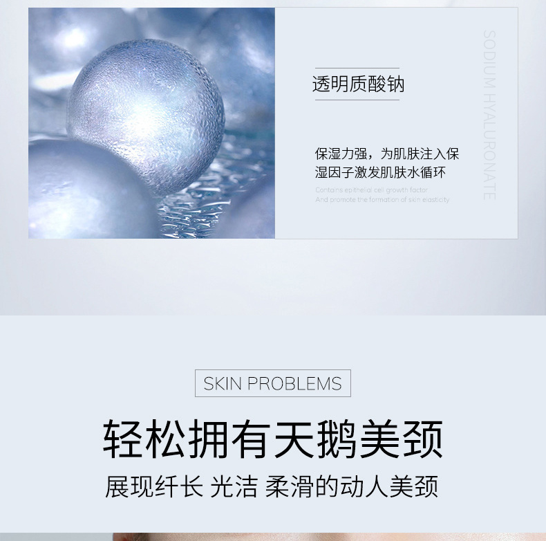 包含着多肽(乙酰基六肽-8、棕榈酰三肽-1、棕榈酰四肽-7、棕榈酰五肽-4),能提拉肌肤,使颈部紧致显年轻。以及积雪草提取物、齿叶乳香树脂提取物等修护成分,可以保湿滋润,提亮颈部肤色,打造雪亮光感颈部。