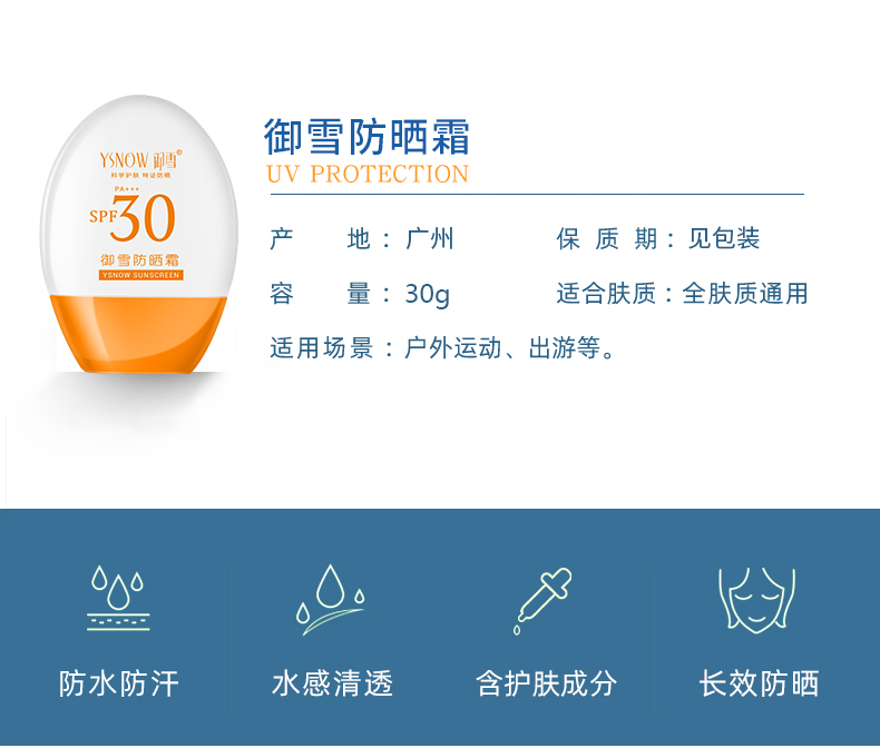 轻盈透亮,隔离防晒,滋养保湿。SPF30+对抗UVB长达7.5小时,预防晒黑晒伤。PA+++多倍阻断UVA,预防色斑、老化、皱纹。无需卸妆,方便易带。集隔离、亲肤、全身适用三个大特点于一体的防晒霜